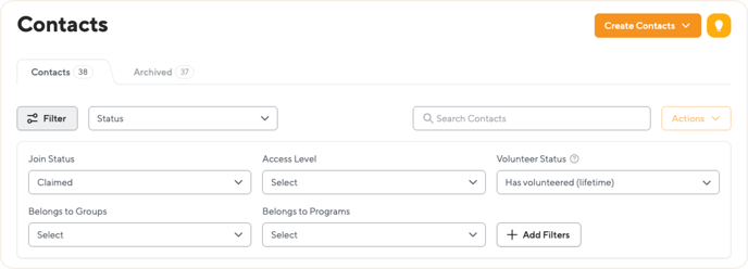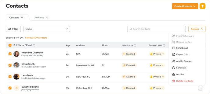 Contacts are the records of your volunteers, and they help you build and manage your volunteer database at POINT.