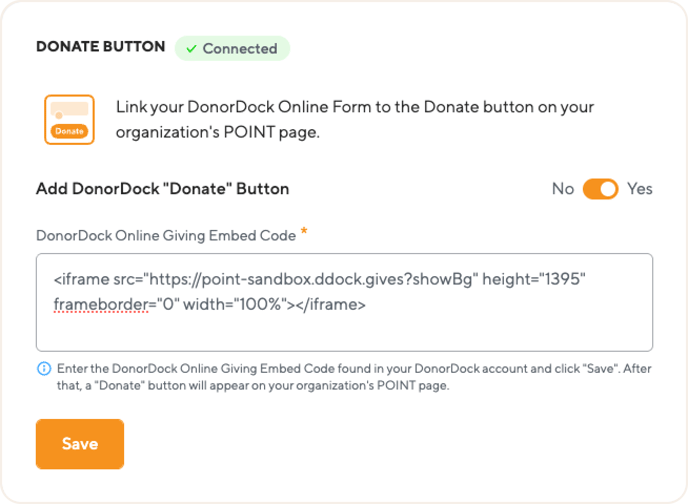 - Add a "Donate" button to your organization's POINT profile, linking it directly to one of your Online Giving forms in DonorDock. This feature helps to convert your volunteers into donors, ensuring that all your fundraising activities are streamlined within DonorDock.