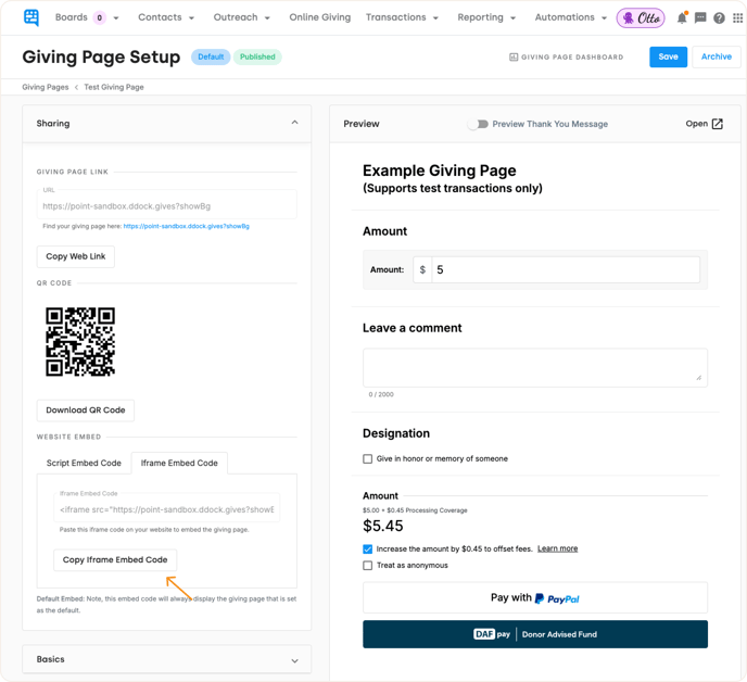 - Click edit Giving Page you will be redirected to Giving Page Setup.
