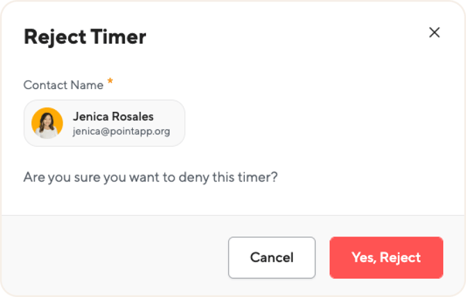 A Reject Timer confirmation window will appear. What happens next depends on what kind of hours were being tracked: