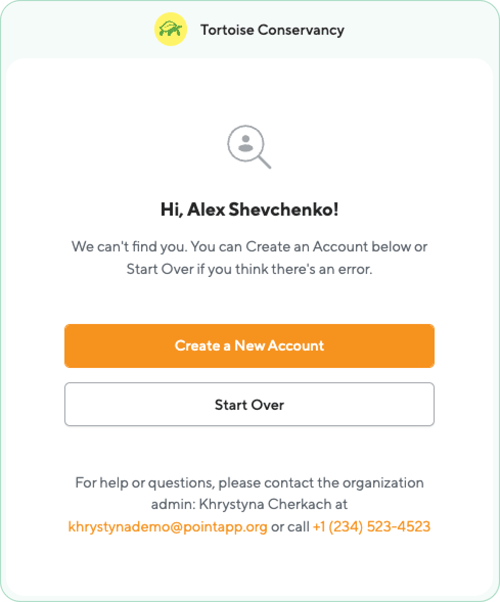 Search Failure: When you approach the Kiosk and enter your name/email, the system will not find your profile. The screen will display a message such as "We can't find you. You can Create an Account below."