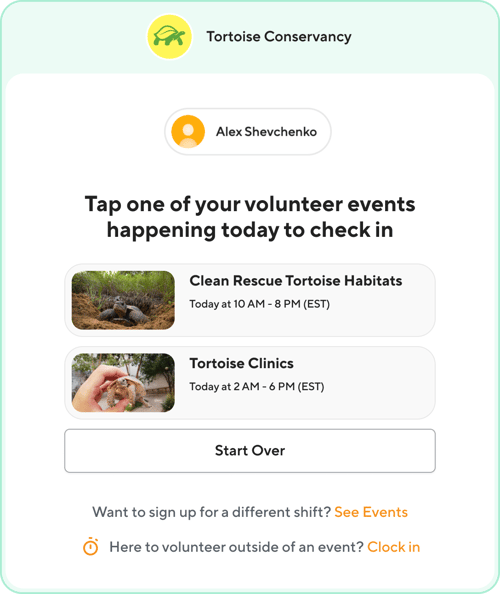 Sign Up & Check In: You will be prompted to both sign up for the shift and check in for that specific shift simultaneously. Click the appropriate button to start recording your time for the event.